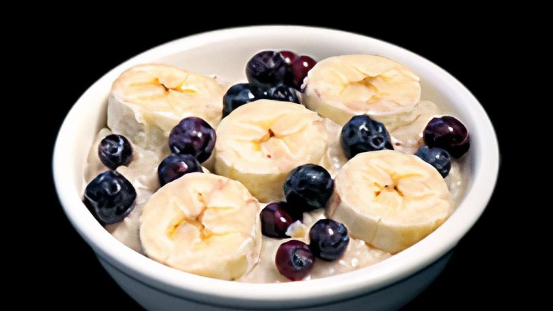 Blueberries, bananas & oatmeal with a side of milk, honey & brown sugar.