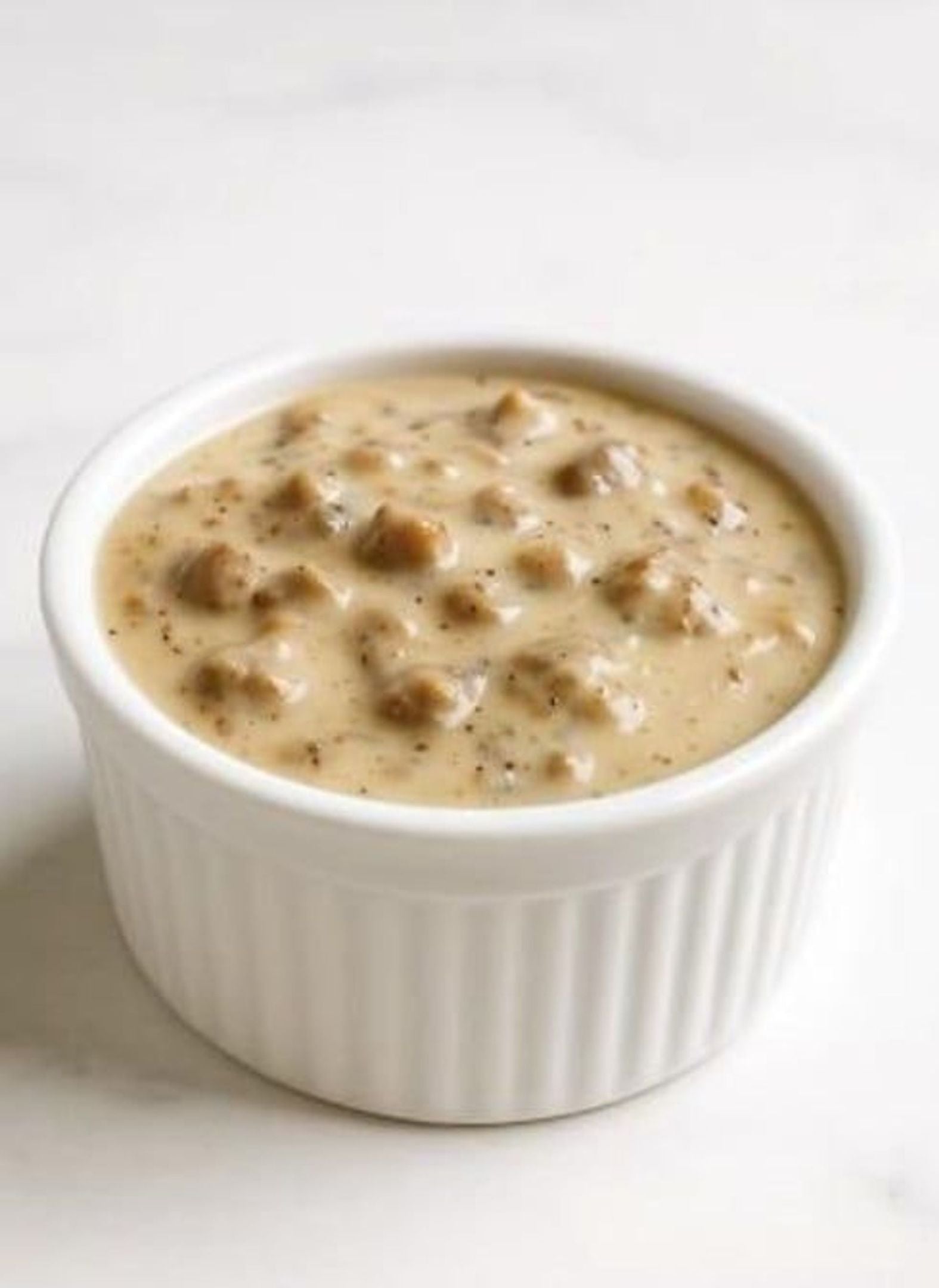 Ground sausage combined with a blend of spices, typically cooked into a creamy gravy.