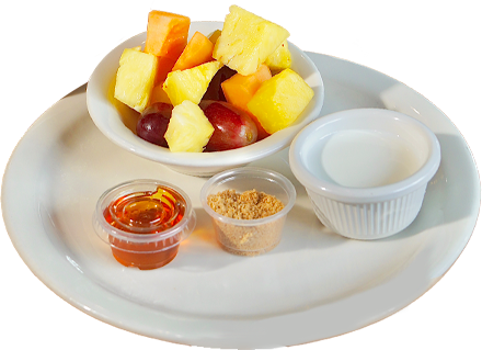 A mix of seasonal fresh fruits typically including melon, grapes, pineapple, and berries.